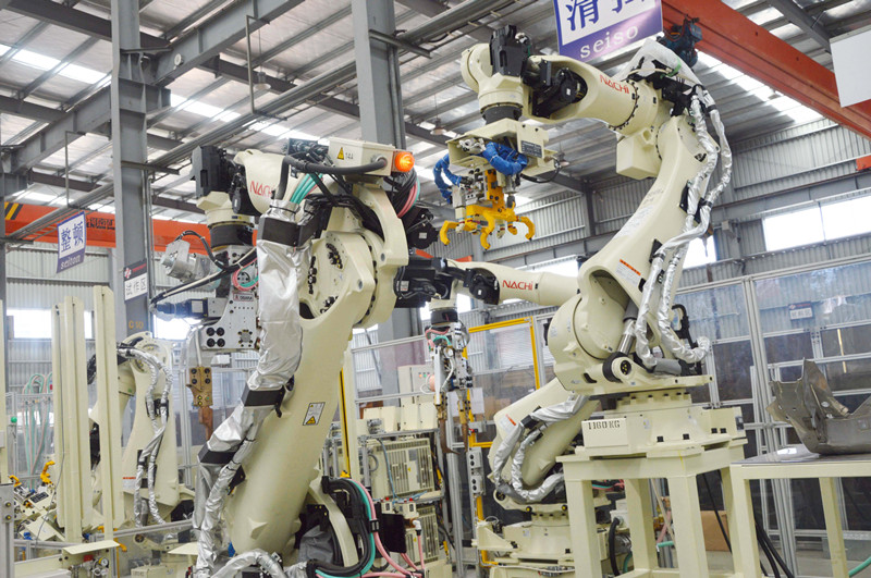 汽車零部件機器人自動生產線采用OTC新技術SynchroFeed超低飛賊焊接配置,無線示教TIG焊接鎢針研磨技術應用電氣控制系統全新理念